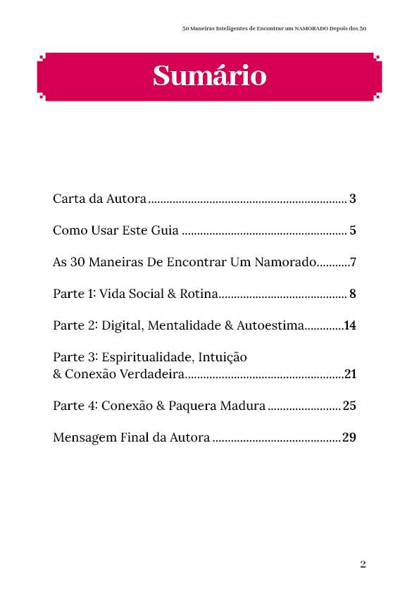 Você já passou por isso: se arrumou toda, investiu tempo e energia em alguém, só pra acabar com o coração apertado e a sensação de “por que não dá certo?”. Talvez você até tenha tentado outros ebooks de namoro, mas só encontrou gente que não te entende, assuntos rasos e acabou com caras que somem do nada. Mas chega de se sentir invisível. Chega de se perguntar se o problema é com você. Nós sabemos que você é uma mulher incrível, com sonhos, desejos e uma história única – e existe alguém por aí que está louco pra te conhecer.