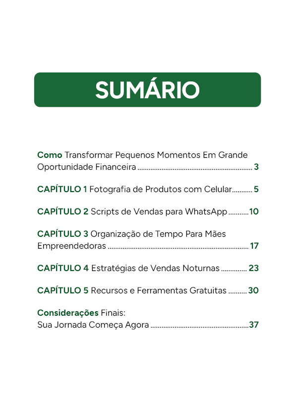 Este eBook é um mapa prático para mães que querem vender de casa, com o que têm hoje, e ver resultados ainda no primeiro mês.