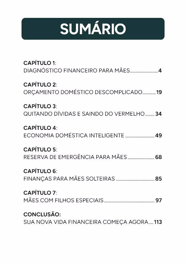 Criado por especialistas e pensado exclusivamente para MÃES BRASILEIRAS, este ebook é de leitura fácil e prática. Tudo para a transformação financeira de quem está cansada de viver no limite.