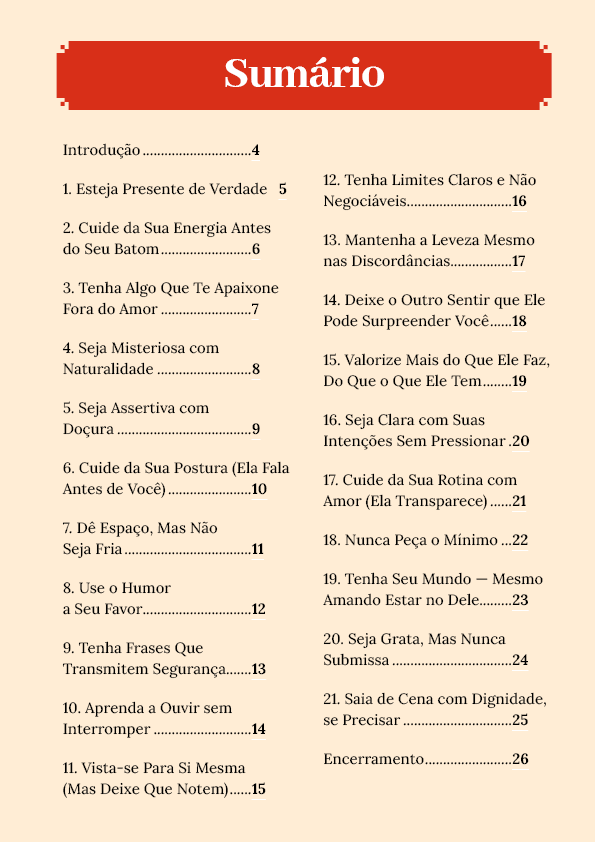 Este manual foi criado para mulheres reais, que já entenderam que amor próprio não é egoísmo — é a base de toda relação saudável e atraente.
